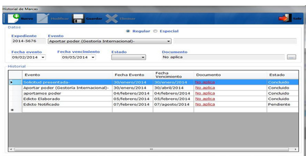 El sistema de marcas y patentes es una herramienta que le permite llevar el control detallado de todo el proceso de inscripcion de marcas y patentes, le informara del vencimiento de las notificaciones que esten pendientes de contestar, asi como los plazos para aportar documentos evitando perdidas economicas por el archivo de las solicitudes.